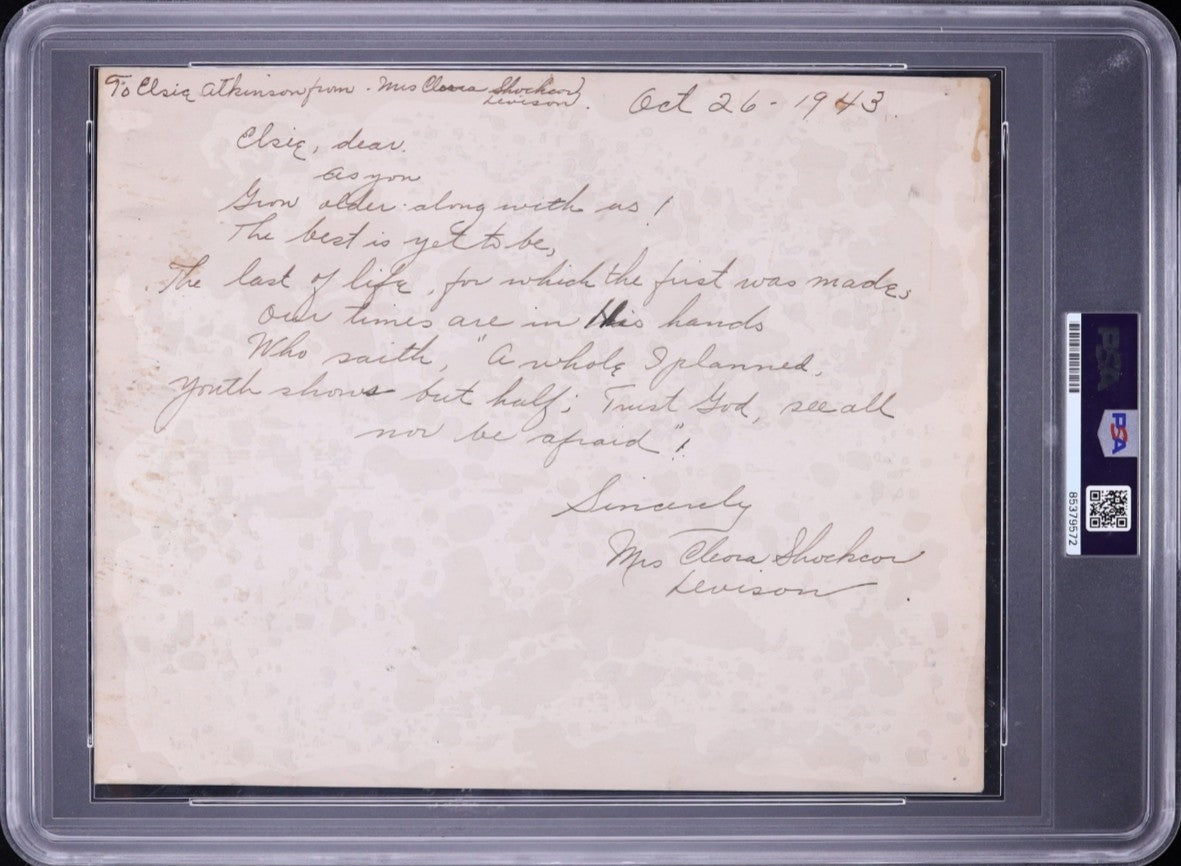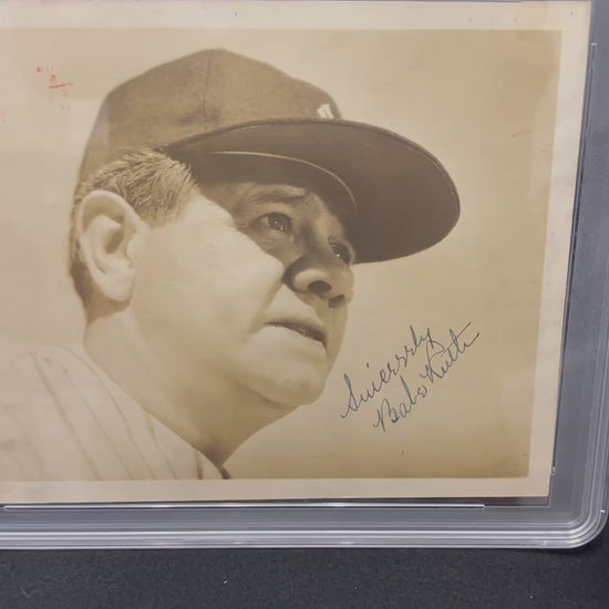 Offered here is a stunning, Babe Ruth signed 8x10 photo! This is extremely rare for a few reasons. First off, it’s very hard to find a Babe Ruth signed 8 x 10 Photo to begin with. Secondly, finding one without a personalization such as “To Bob” is also extremely rare. Finally, the condition of this signature, which graded a PSA Mint 9, also makes it very rare and desirable. The story on the back also adds to its appeal. A piece like this, people want to know the origin. From what it reads, this appears to have been given to someone as a gift back in 1943, which is noted on the reverse of the photo. The writing on the back does not interfere or deter from the signature or image on the front. Local pickup available, must message me first. Ships fully insured, well packed, within 1 business day! Thank you very much!